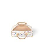 As part of the re-editon of the Louis Vuitton x Murakami collection, the Handbag East West is signed all over with a Monogram motif that has been joyfully reimagined with the Japanese artist’s signature rainbow hues. The sleek east-west design is detailed with emblematic natural cowhide leather details, including two top handles, a rebellious studded lateral band, an adjustable shoulder a removable strap and an exclusive LV x TM keybell, while golden corners nod to the House’s heritage travel trunks.