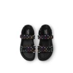 Striking signatures from the re-edition of the Louis Vuitton x Murakami collection reimagine the LV Sunset flat comfort sandal as a playful everyday statement. Crafted from coated canvas, the iconic Monogram motif is accented with bright rainbow tones inspired by the exuberant aesthetic of Japanese artist Takashi Murakami, while the front strap is embellished with chunky LV Initials with golden touches. Complete with a calf-leather lining, an anatomic footbed and lightweight micro outsole for elevated comfort.