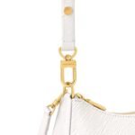 Twisting elegance with edge, the Marellini is crafted from the House’s richly textured Epi leather in bijou proportions big enough to fit daily essentials, including a large smartphone. Rebellious chunky golden chains secure a round coin purse and a mirror to the outside, both of which strike a playful contrast in the Louis Vuitton x Murakami collection’s multicolored Monogram canvas.