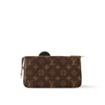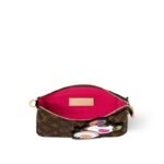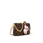 The House’s classic Pochette Accessoires makes a vibrant statement as part of the re-edition of the Louis Vuitton x Murakami collection. Crafted from timeless Monogram coated canvas, the silhouette of the pouch is reworked with the artist’s playful Panda character in vibrant pop colors. The natural cowhide leather strap and chic golden chain are both removable for versatile styling options, while a zipper fastening keeps daily essentials secure.