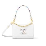 The Twist MM Slim handbag is a modern classic in an understated silhouette crafted from the House’s signature Epi grained cowhide leather for a rich textural finish. The emblematic LV Twist lock and the Toron top handle are playfully accented with a multicolored Monogram motif from the second edition of the Louis Vuitton x Murakami collection, while gleaming golden hardware completes the look with a polished touch.