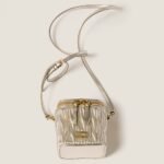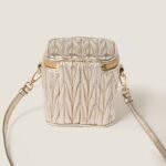Fine matelassé workmanship gives this nappa leather micro bag a compact and modern look thanks to the three-dimensional, textured, and extremely sophisticated effect. The Miu Miu logo stands out with an iconic and instantly recognizable touch.