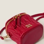 Fine matelassé workmanship gives this nappa leather micro bag a compact and modern look thanks to the three-dimensional, textured, and extremely sophisticated effect. The Miu Miu logo stands out with an iconic and instantly recognizable touch.