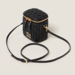 Fine matelassé workmanship gives this nappa leather micro bag a compact and modern look thanks to the three-dimensional, textured, and extremely sophisticated effect. The Miu Miu logo stands out with an iconic and instantly recognizable touch.
