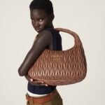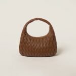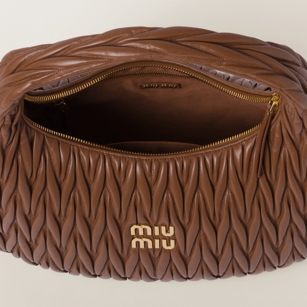 The Wander bag, reinterpreted season after season, has become an iconic accessory of Miu Miu collections. The matelassé nappa leather bag is characterized by the sophisticated three-dimensional effect created by the exquisite workmanship. The hobo shape, blending retro inspirations and contemporary elegance, becomes a new synonym of modern femininity.