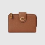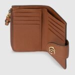 This medium wallet in brown leather features a bamboo zip closure, paying homage to a material at the heart of Gucci??s heritage. Designed with plenty of interior slots and a zip pocket, the accessory is completed by a gold-toned Double G monogram hardware on the snap button closure.