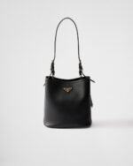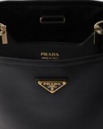 This leather bag has a refined design with soft lines, enriched with emblematic touches and artisanal details. The enameled metal triangle logo adds its signature touch to the versatile accessory.