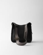 This versatile leather bag boasts a sleek and functional design. The shoulder strap adds a sporty element to the accessory, elevated by the metal logo lettering that stands out on the simple yet distinctive geometry of the iconic triangle.