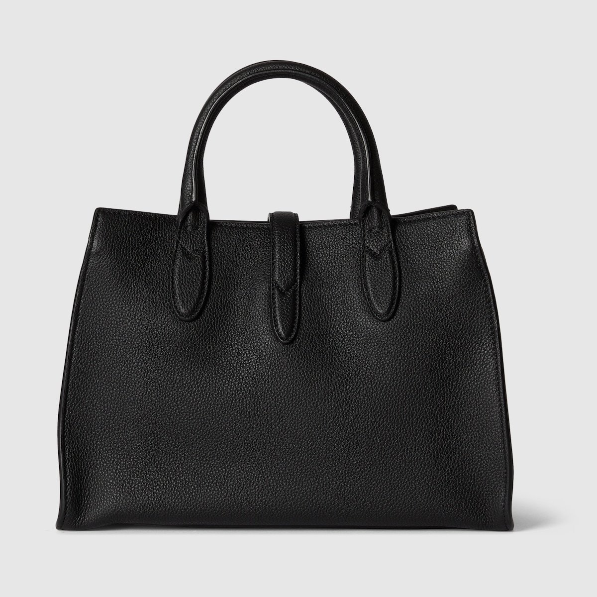This medium tote design continues to feature the snap hook closure, first introduced in the Spring Summer 2024. The sophisticated leather in black has a distinctive natural grain. The top handle bag’s open compartment has a hook closure strap, and comes with a detachable and adjustable shoulder strap.