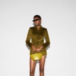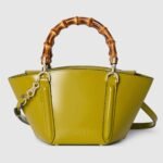 Introducing a bamboo top handle bag, this style from the women’s Fall Winter 2024 runway blends the House’s expert craftsmanship with its iconic motif. The basket-shaped bag reveals a hexagonal base, highlighting its artisanal construction. The mini size in pistacchio green is complete with a detachable shoulder strap.