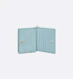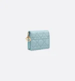 The Lady Dior Gardenia wallet is both compact and spacious. The combination of celestial blue lambskin with Cannage topstitching and detachable D.I.O.R. charms creates a chic and timeless look. The miniature accessory can hold all the daily essentials and coordinate effortlessly with other items from the Lady Dior line.