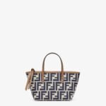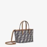 Mini shopping bag made of jacquard fabric with an iconic midnight blue FF motif. Embellished with beige leather and a zip fastening with a long, knotted leather zip pull.