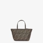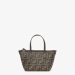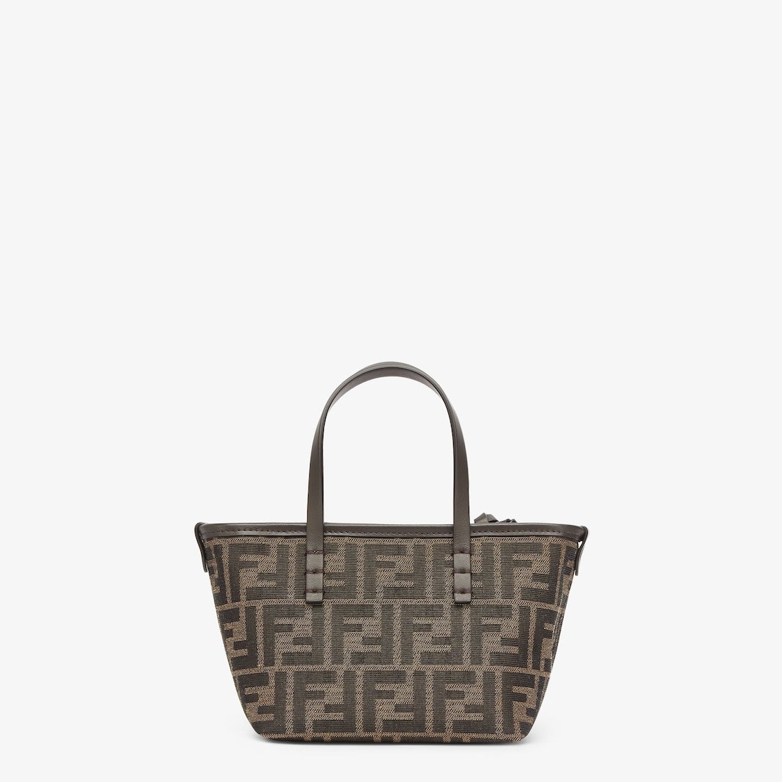 Mini shopping bag made of jacquard fabric with an iconic brown FF motif. Embellished with dark brown leather and a zip fastening with a long, knotted leather zip pull.