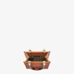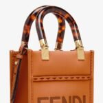 Mini Sunshine Shopper bag made from dark brown leather with hot-stamped “FENDI ROMA” and stiff tortoiseshell effect plexiglass handles.