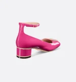 New for Winter 2024, the Miss Dior Graffiti pump is a creation with retro appeal. The fuchsia patent calfskin upper showcases an enamel metal plate with a gold-tone Miss Dior Graffiti signature, a nod to the 1967 debut ready-to-wear collection and a manifesto to Maria Grazia Chiuri’s hallmark celebration of feminism. Completed by an ankle strap and a 4-cm (1.5) cylindrical heel embellished with gold-finish metal lines, the shoe can be coordinated with any of the season’s looks.