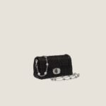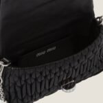 Sparkling crystals embellish the chain shoulder strap and define the sophisticated design of the Miu Crystal nappa leather bag. The quilted motif adds an iconic note to the bag.