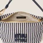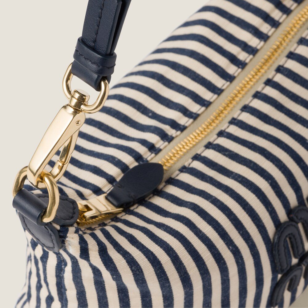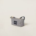 A vibrant stripe print characterizes this Miu Spirit fabric mini-bag. The leather handle echoes the leather logo that completes the design with an iconic touch.