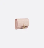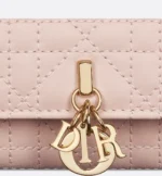 The My Dior Glycine wallet is distinguished by its compact and practical design. Crafted in powder pink Cannage lambskin, it is enhanced by D.I.O.R. charms on the front. Accommodating all the essentials, the refined accessory will fit anywhere and can be paired with other My Dior creations.