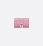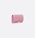The My Dior Glycine wallet is distinguished by its compact and practical design. Crafted in hydrangea pink Cannage lambskin, it is enhanced by D.I.O.R. charms on the front. Accommodating all the essentials, the refined accessory will fit anywhere and can be paired with other My Dior creations.