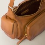 A refined, captivating aesthetic characterizes this new leather bag. The multiple pockets, inspired by utility wear, enhance the design, adding functionality and originality to the aesthetic. The metal hardware adds shiny touches to the accessory, while the lettering logo completes the aesthetic with an iconic, distinctive note.