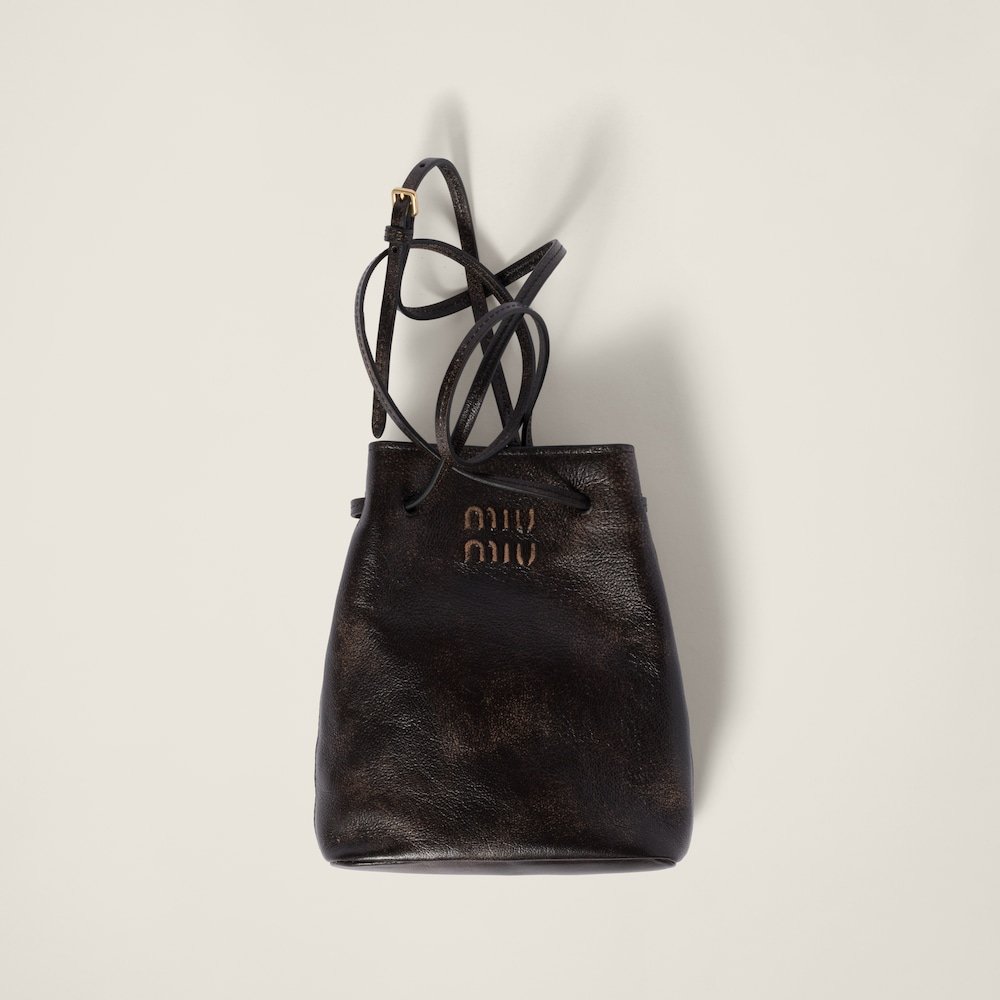 Vintage touches characterize the craftsmanship of this nappa leather pouch with an aged effect. The embossed logo and the adjustable shoulder strap accentuate its charm and versatility.