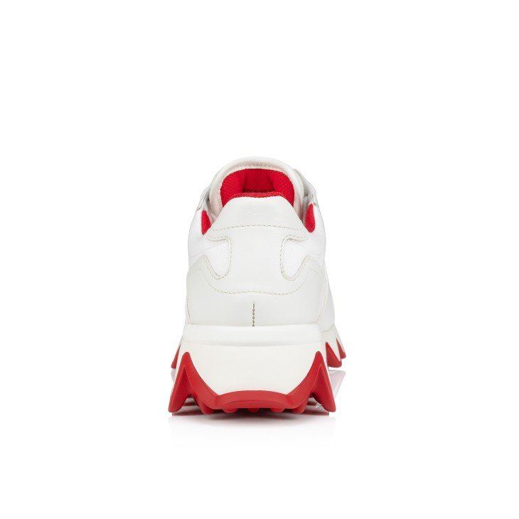 The Nastroshark sneaker for women has an audacious look. Inspired by the iconic Loubishark, it sits on a two-color rubber sole evoking shark teeth. This model in all-over white is crafted in calf leather and fabric. This sporty sneaker features a signature Maison Christian Louboutin three-color ribbon.