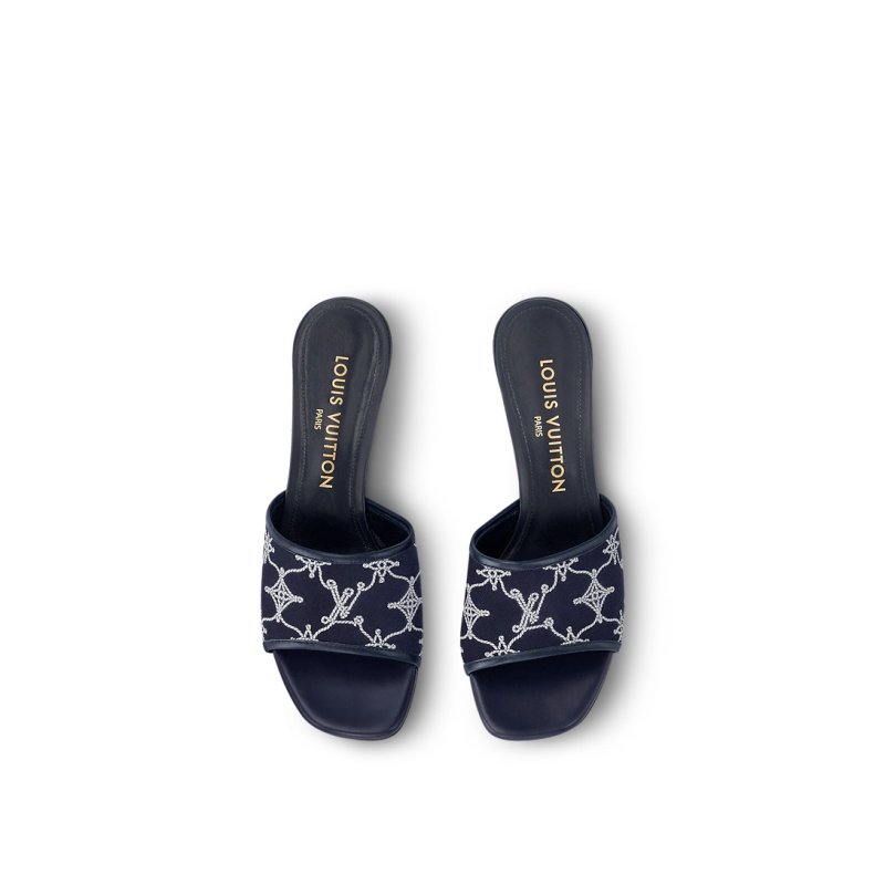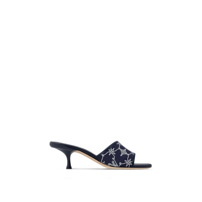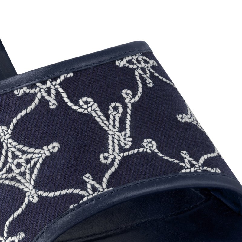 This edition of the Neo Revival mule channels summer’s nautical spirit with its front strap in embroidered fabric, which features the Monogram pattern reinterpreted in sailing ropes. Tonal calf-leather trim complements this casual-chic style, which is finished with a feminine kitten heel and a leather outsole.