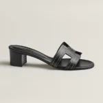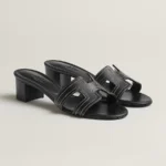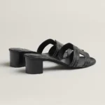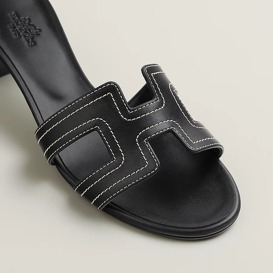 High heel sandal in embroidered calfskin with iconic ‘H’ cut-out.