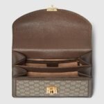 The world of Ophidia continues to evolve with new iterations each season. The top handle bag is presented as part of the Epilogue collection with a detachable shoulder strap. The vintage influenced square shape is accentuated by the House Web stripe and Double G hardware??a contemporary take on a Gucci archival belt buckle from the ’70s. Crafted from the House’s monogram canvas, the style has a strong logo feel.