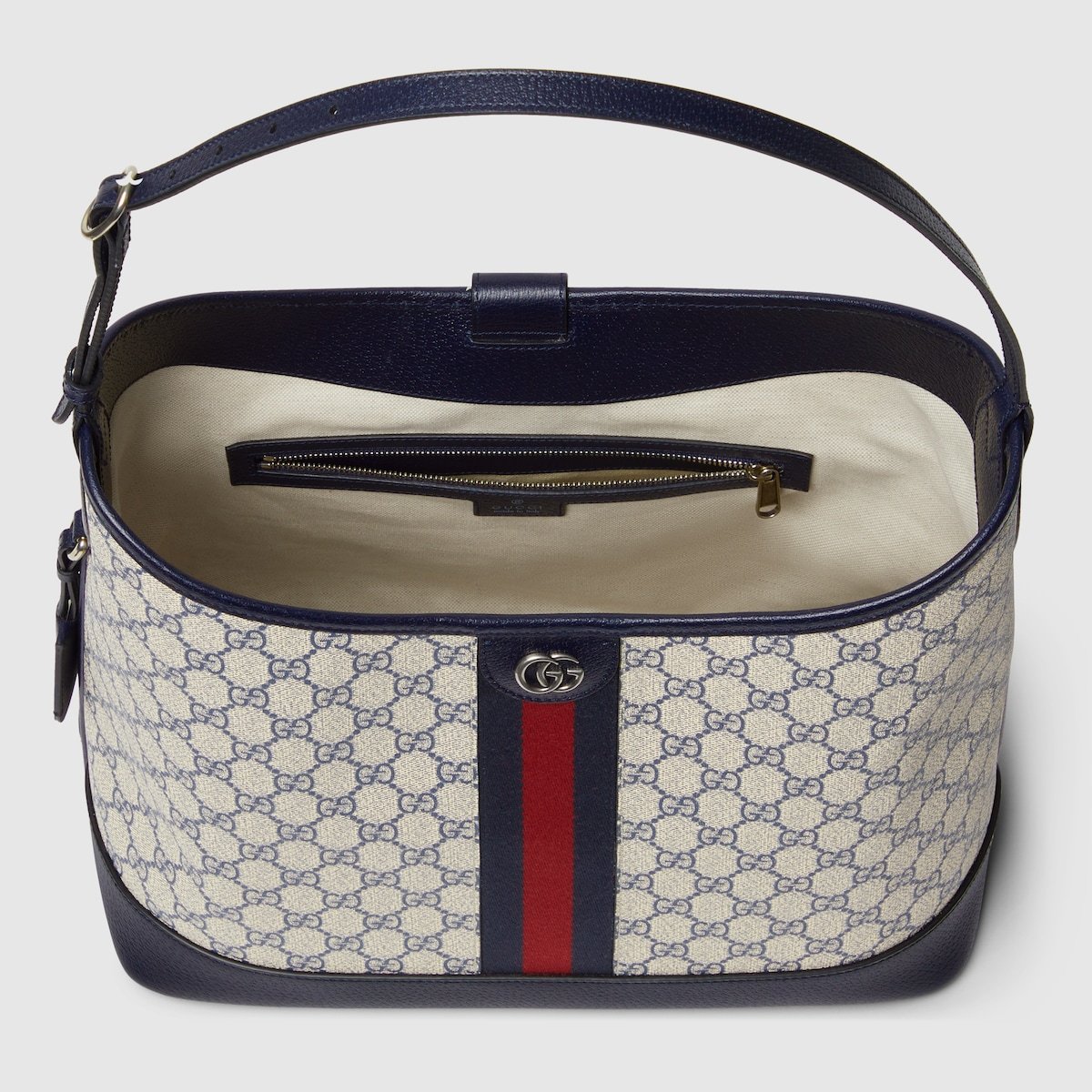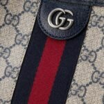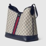 The Ophidia is reinvented in new and unexpected ways in this medium-sized piece, which blends the open bucket design and shoulder bag style. It is crafted in the House’s signature GG Supreme canvas in the color combination of beige and blue.
