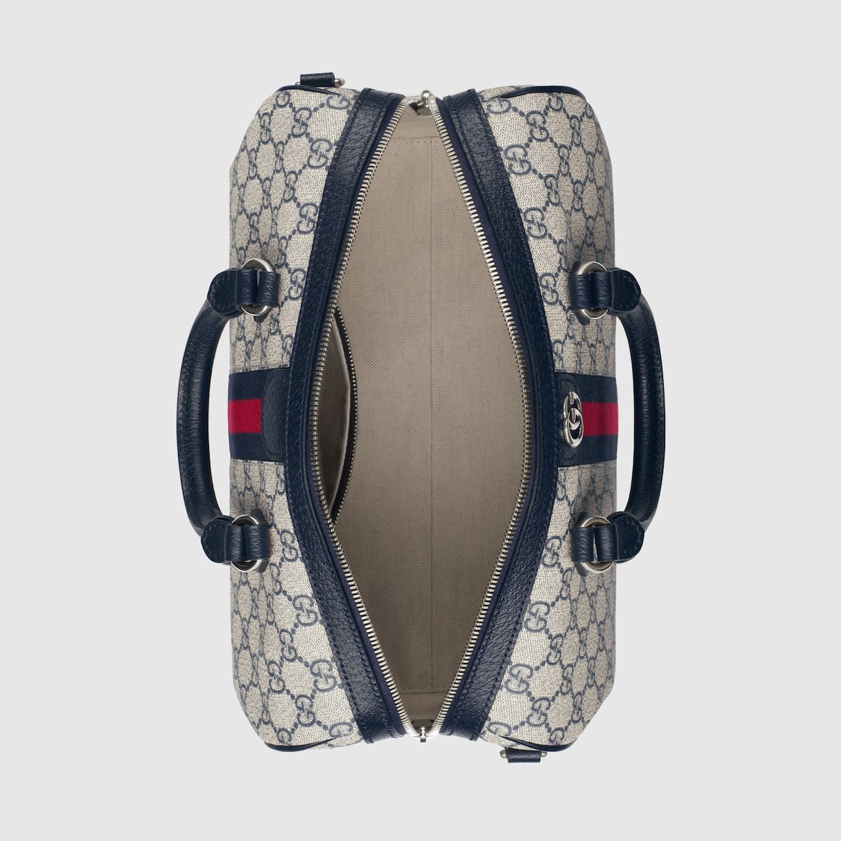 A signature fabric, GG Supreme canvas has become a staple throughout the Gucci universe. Reinterpreted through the Gucci lens, the material appears throughout the latest collections. Here, this medium top handle bag is crafted with the all-over monogram motif. Completing the logo feel, the signature Double G hardware completes the style.