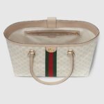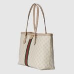 Inspired by the summer spirit and beach clubs on the Italian coast, this item is part of Gucci Lido. A heritage material from the archive, GG Supreme has been reimagined in Gucci Love Parade in different color combinations and combined with contemporary as well as classic styles. The Ophidia tote is presented in a beige and white variation of the signature material with a tonal trim. Originally a play on a ’30s design, the canvas speaks to the historical narrative that runs throughout the collection.
