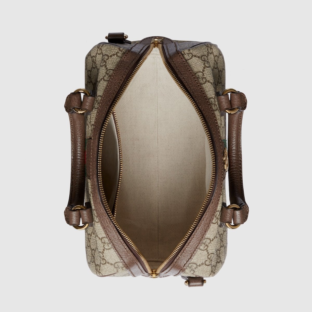 A signature fabric, GG Supreme canvas has become a staple throughout the Gucci universe. Reinterpreted through the Gucci lens, the material appears throughout the latest collections. Here, this small top handle bag is crafted with the all-over monogram motif. Completing the logo feel, the signature Double G hardware completes the style.