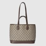 The Ophidia line is further elevated through new sizes and styles including variations with top handles as well as shoulder straps, allowing for versatile wear. The signature Double G hardware completes this beige and ebony GG Supreme design.