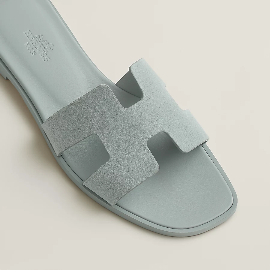 Sandal in suede goatskin with iconic ‘H’ cut-out and straight-cut edges.