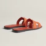 Sandal in suede goatskin with iconic ‘H’ cut-out and straight-cut edges.
