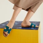 The sandal is an invitation to travel. Its journey begins on the shores of Oran, warmed by the radiant sun. Then, alive with vibrant colors and geometric lines, it makes its way between Ndebele houses. Created in 1997 by Pierre Hardy and enhanced by the iconic H cut, its style is minimalist and timeless. From one collection to the next, this summer icon is constantly reimagined in a multitude of colors and materials.
