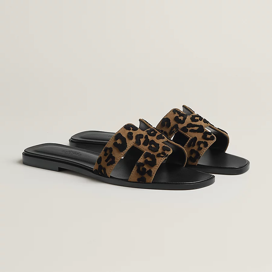 Sandal in tufted suede goatskin with iconic ‘H’ cut-out.