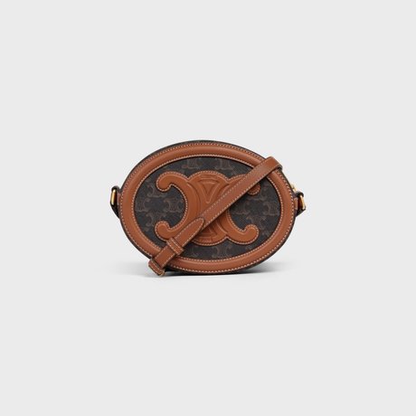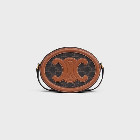 OVAL BAG CUIR TRIOMPHE IN TRIOMPHE CANVAS AND CALFSKIN TAN