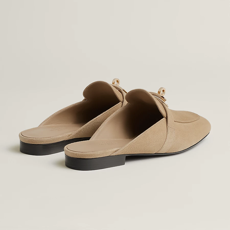 Mule in suede goatskin with iconic Kelly buckle.