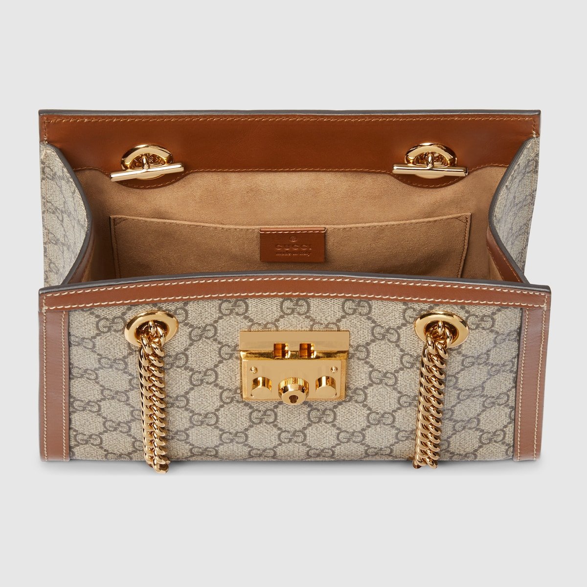 A structured shoulder bag in GG Supreme canvas with a strap that secures with a key lock closure pulled straight from the archives. The key is placed in a detachable leather key case.