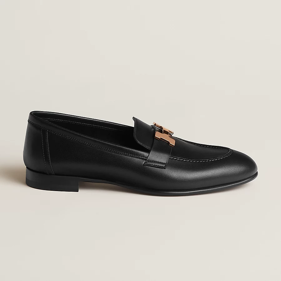 Loafer in goatskin with rose gold-plated signature ‘H’ detail.