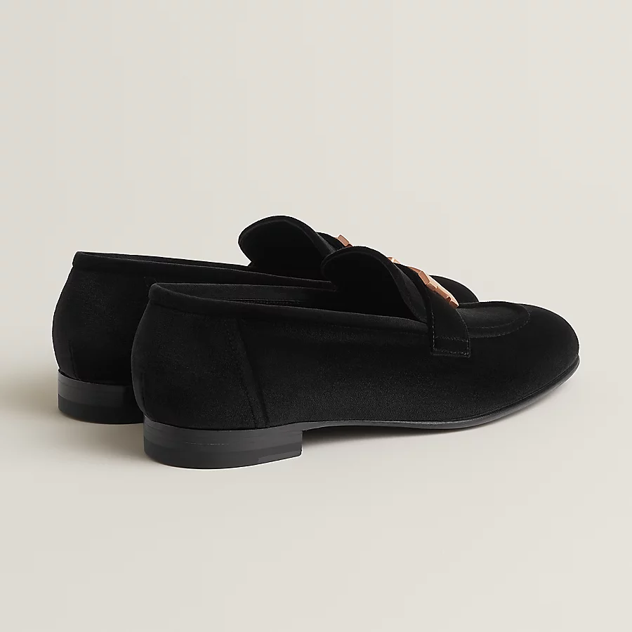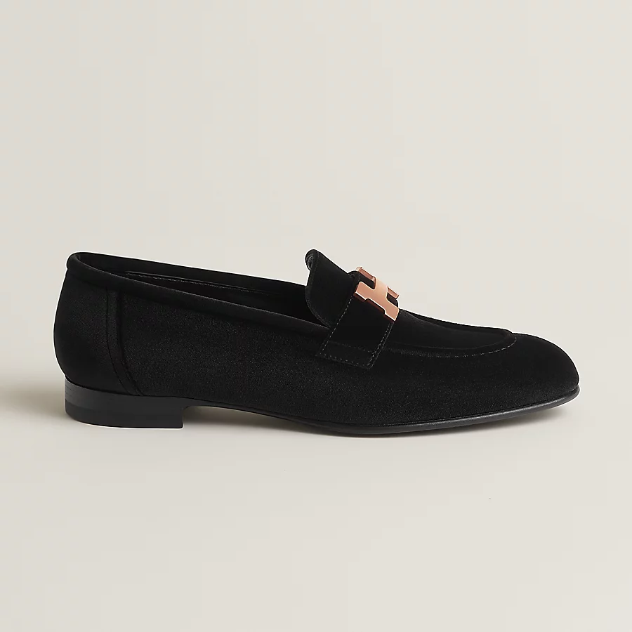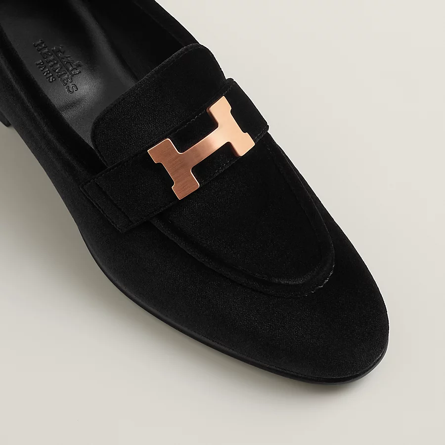 Loafer in velvet with brushed rose gold-plated signature ‘H’ detail.