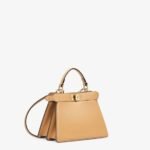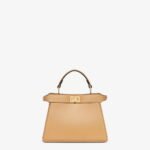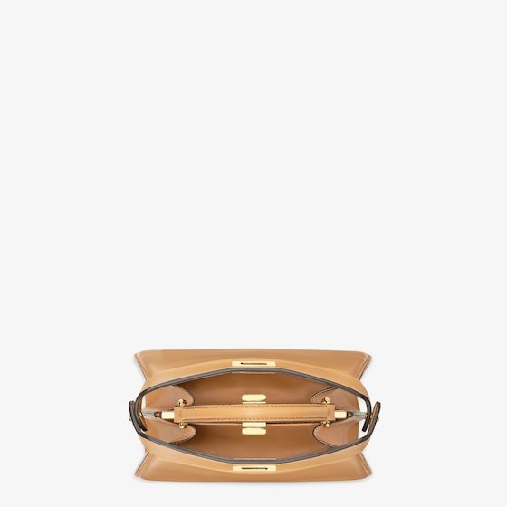 Iconic Peekaboo ISeeU bag in an ideal, compact size. Made from soft, padded, beige nappa leather and embellished with the classic twist lock on both sides.