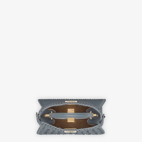 Iconic Peekaboo ISeeU bag in an ideal, compact size. Made of blue leather with borders and front panel embellished by a hand-crafted tone-on-tone interlacing. Decorated with the iconic twist lock on both sides.