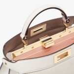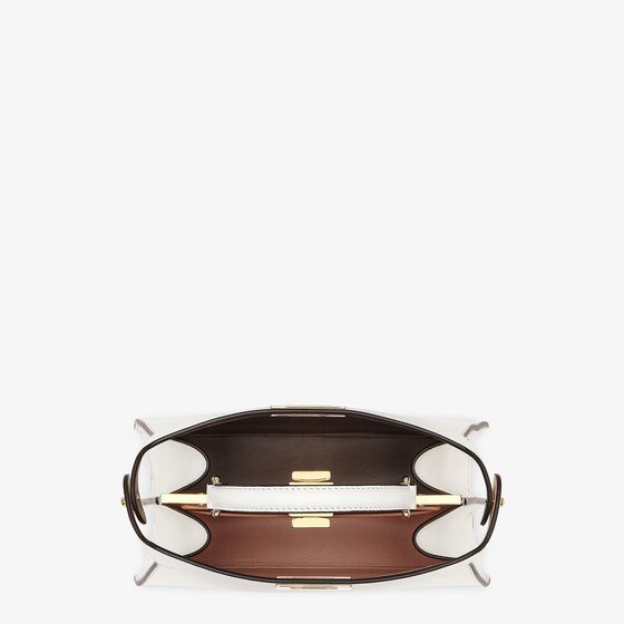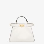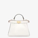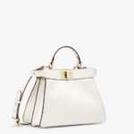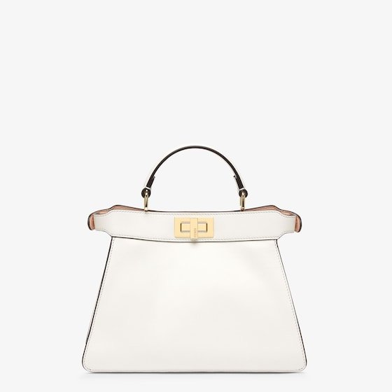 Iconic small Peekaboo ISeeU bag, made of white leather and embellished with the classic twist lock on both sides.