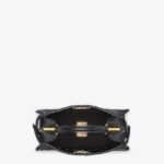 Iconic small Peekaboo ISeeU bag made of black leather with borders and front panel embellished with a tone-on-tone interlace. Decorated with the iconic twist lock on both sides.