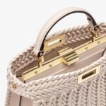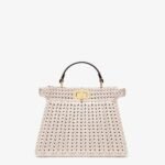 Iconic small Peekaboo ISeeU bag made of camellia leather with borders and front panel embellished with a tone-on-tone interlace. Decorated with the iconic twist lock on both sides.