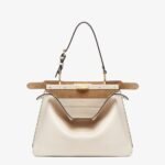 Iconic medium Peekaboo Soft bag, the epitome of Fendi craftsmanship and creativity. A timeless icon, the Peekaboo was created in 2009. Like the children’s game it takes its name from, peek-a-boo, the bag plays with the beauty showcased on the outside and that concealed on the inside.
