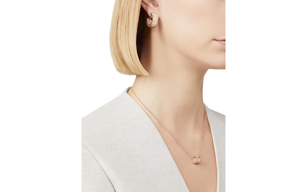 Perlée clovers pendant, 18K rose gold, round diamonds; diamond quality DEF, IF to VVS.